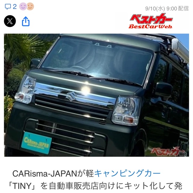 アウトドアWEBメディア Soto Loverさんに弊社軽キャンピングキット掲載されました。 記事はこちらから↓ 自社で「軽キャン」を製造&販売! CARisma-JAPANの「TINY」組み立てキットを販売スタート | soto lover - ソトラバ...