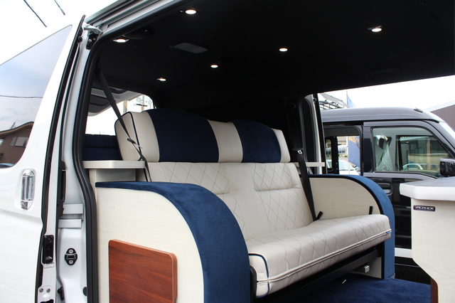 - サブバッテリーシステム(走行充電)・ステンレス製ギャレー・シャワーフォーセット・2段ベッドシステム