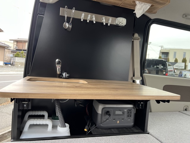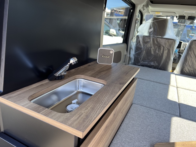 - ポータブル電源・ステンレス製ギャレー(給排水タンク各10ℓ)・間接LEDダウンライト
